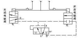 ① 開(kāi)啟:在二位三通電磁先導(dǎo)閥的手動(dòng)旋鈕處于與縱軸平行的“一”位置情況下,旋轉(zhuǎn)二位三通電磁先導(dǎo)閥的手動(dòng)旋鈕,實(shí)現(xiàn)開(kāi)啟手動(dòng)操作,動(dòng)作程序如自動(dòng)開(kāi)啟程序。
